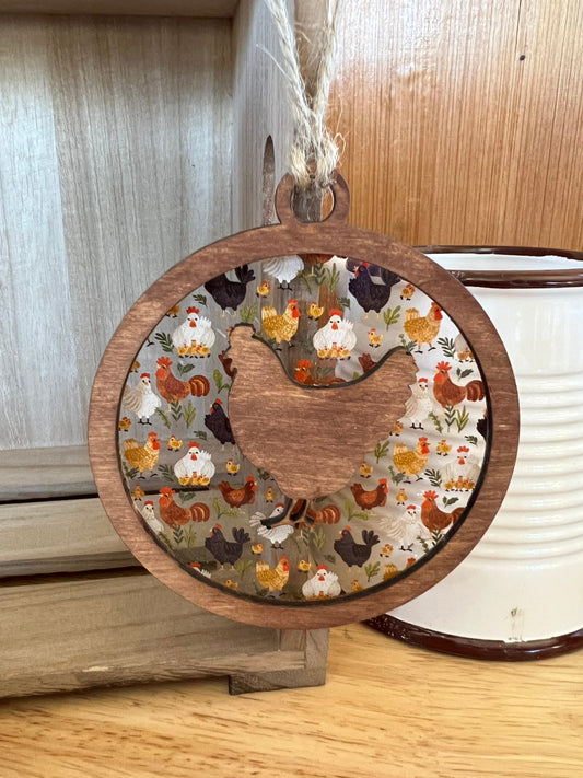 Chicken Christmas Ornament, Farmhouse Decor, Chicken Decor For Home, Acrylic Chicken Decor