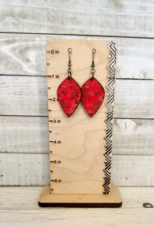 Christmas Reindeer Wooden Earrings | Engraved Holiday Red Earrings