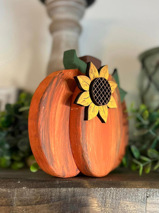 Chunky Wood Pumpkin Shelf Sitter, 1" Wood, Hand Painted Fall Decor