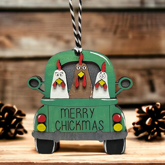 Chicken Christmas Ornament, Farmhouse Decor, Chicken Decor For Home, Merry Chickmas Country Farm Ornament
