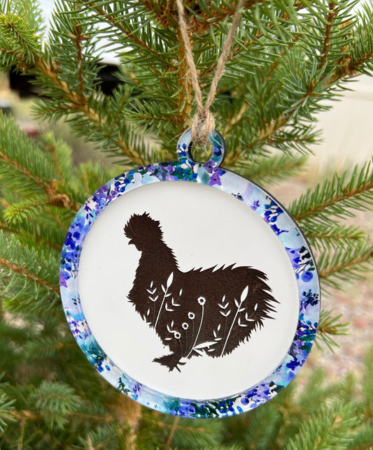 Silkie Chicken Christmas Ornament | Farm Chicken Floral Home Decor