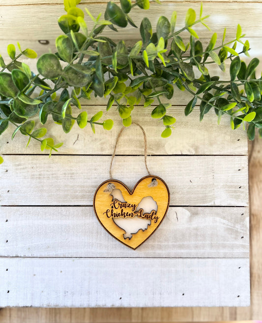 Chicken Ornament Set, Wooden Chicken Decor, Rustic Farmhouse Decor, Chicken Mom, Crazy Chicken Lady, Valentine Chicken Decor